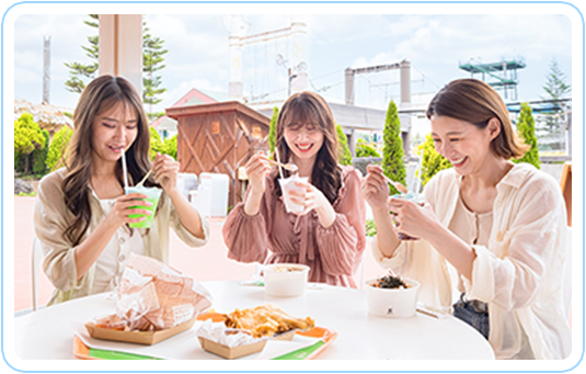園内はいろんなメニューがあるから、お好きなものをチョイスしてね!みんなシェアもありかも♡